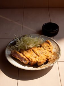 Nacido en Tokio a finales del siglo XIX, este plato es la versión japonesa de la chuleta empanada, pero con un toque único gracias al uso de panko, el pan rallado japonés que aporta una textura mucho más ligera y crujiente.